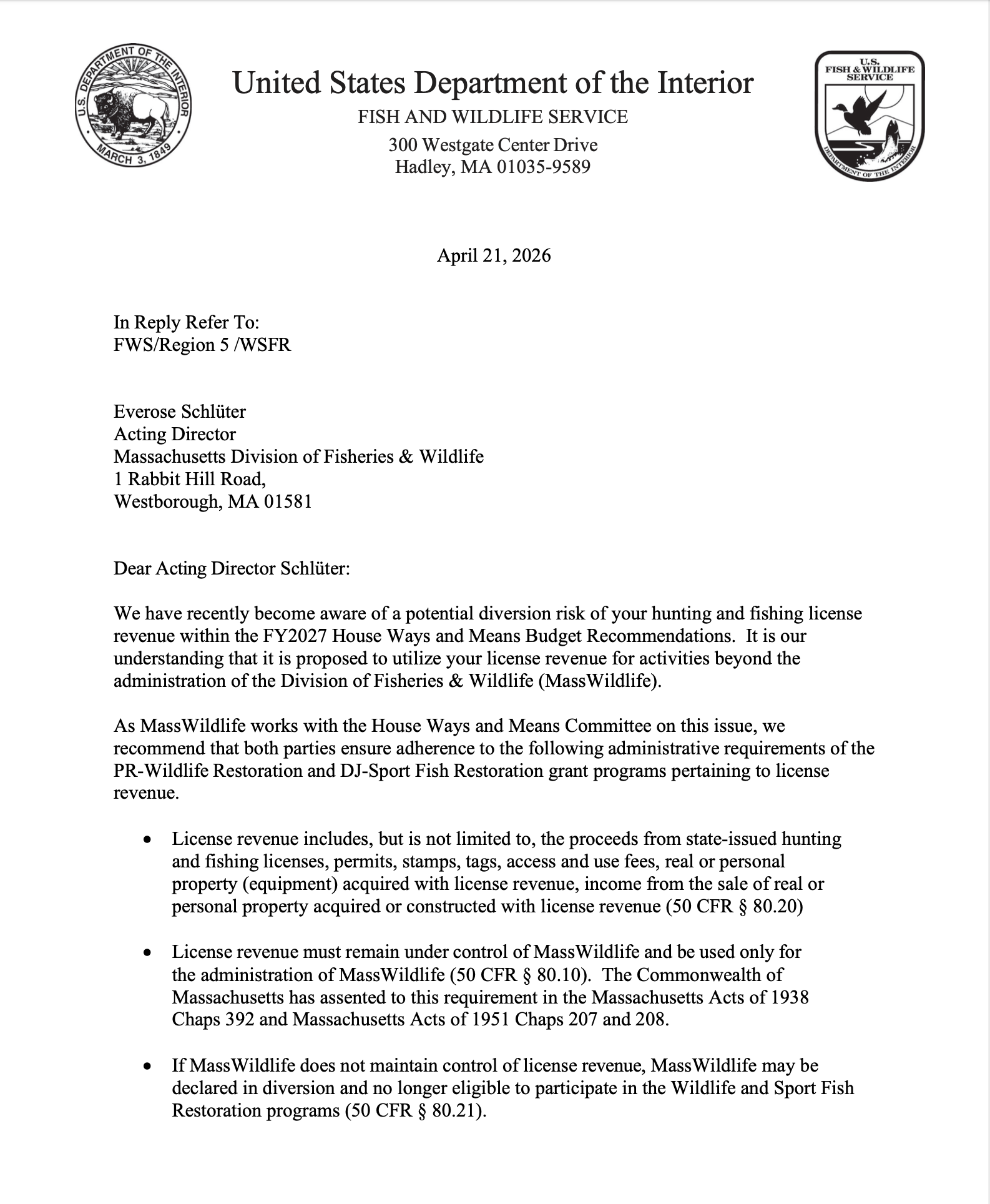 Script: “The diversion of Inland Fisheries and Game Funds to the Marine Fisheries budget in line item 2330-0100 is an illegal move that will result in Massachusetts losing millions of dollars in federal fish and wildlife funding and likely bankrupt professional wildlife management in the state.”