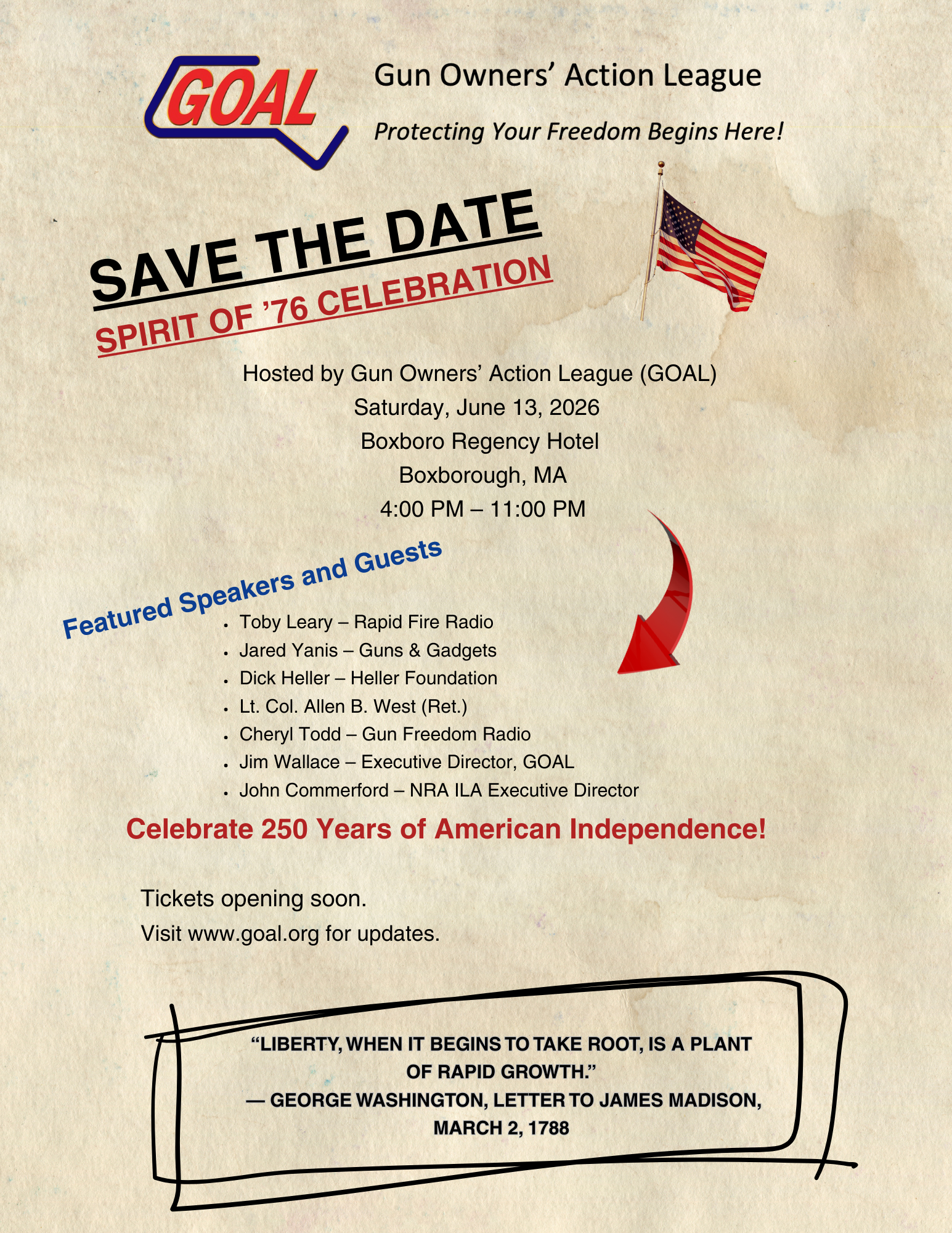 © 2024 GUN OWNERS' ACTION LEAGUE. 287 TURNPIKE RD., SUITE 115, WESTBORO MA 01581 ALL RIGHTS RESERVED - POWERED BY ASSOCIATIONSHPERE