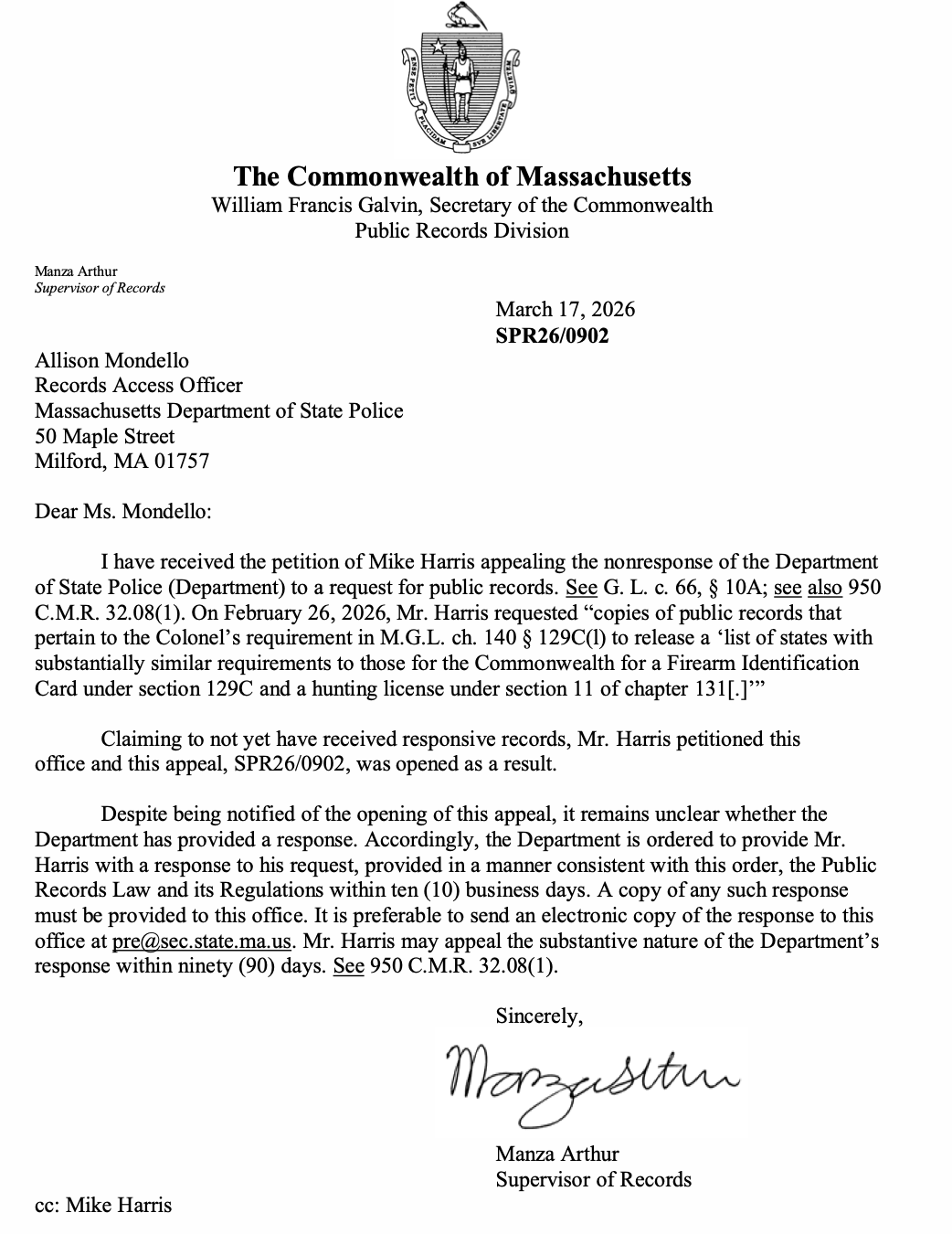 In response to this lack of information, on February 26th, 2026, GOAL submitted a public records request to the State Police to obtain copies of public records that pertain to this requirement in order to get an understanding as to where the list stands or if there is even any intention of releasing one. The ten business days allowed for a response have since passed and no response; leading to GOAL submitting an appeal to the Secretary of the Commonwealth for non-responsiveness on Friday, March 13th. Our appeal was approved and a letter was sent to the State Police today, March 17th, directing them to respond to our inquiry.